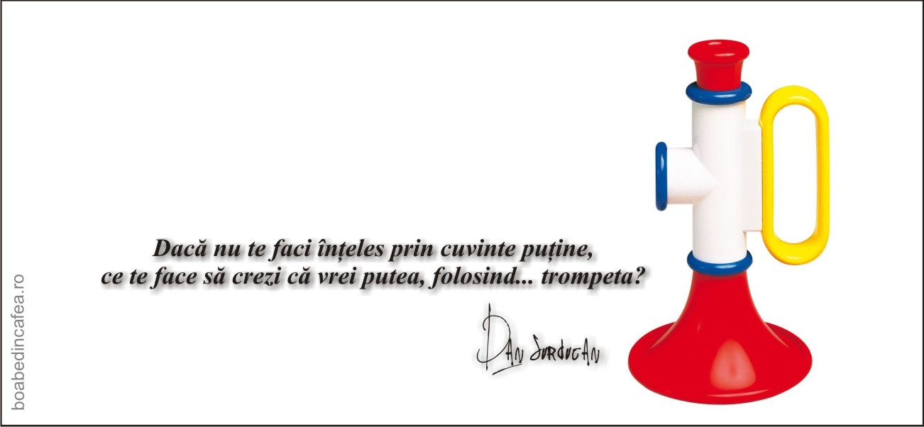 Dacă nu te faci înțeles prin cuvinte puține, ce te face să crezi că vrei putea, folosind… trompeta?