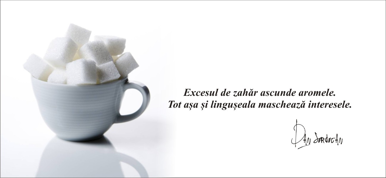 Excesul de zahăr ascunde aromele. Tot așa și lingușeala maschează interesele.