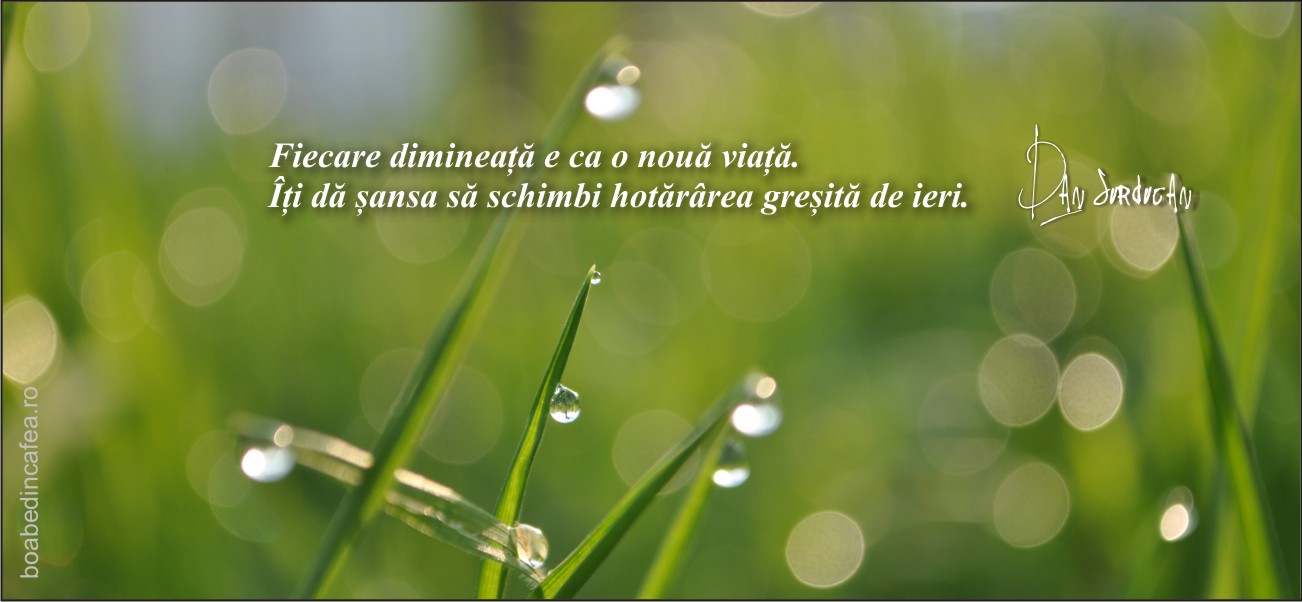 Fiecare dimineață e ca o nouă viață. Îți dă șansa să schimbi hotărârea greșită de ieri.